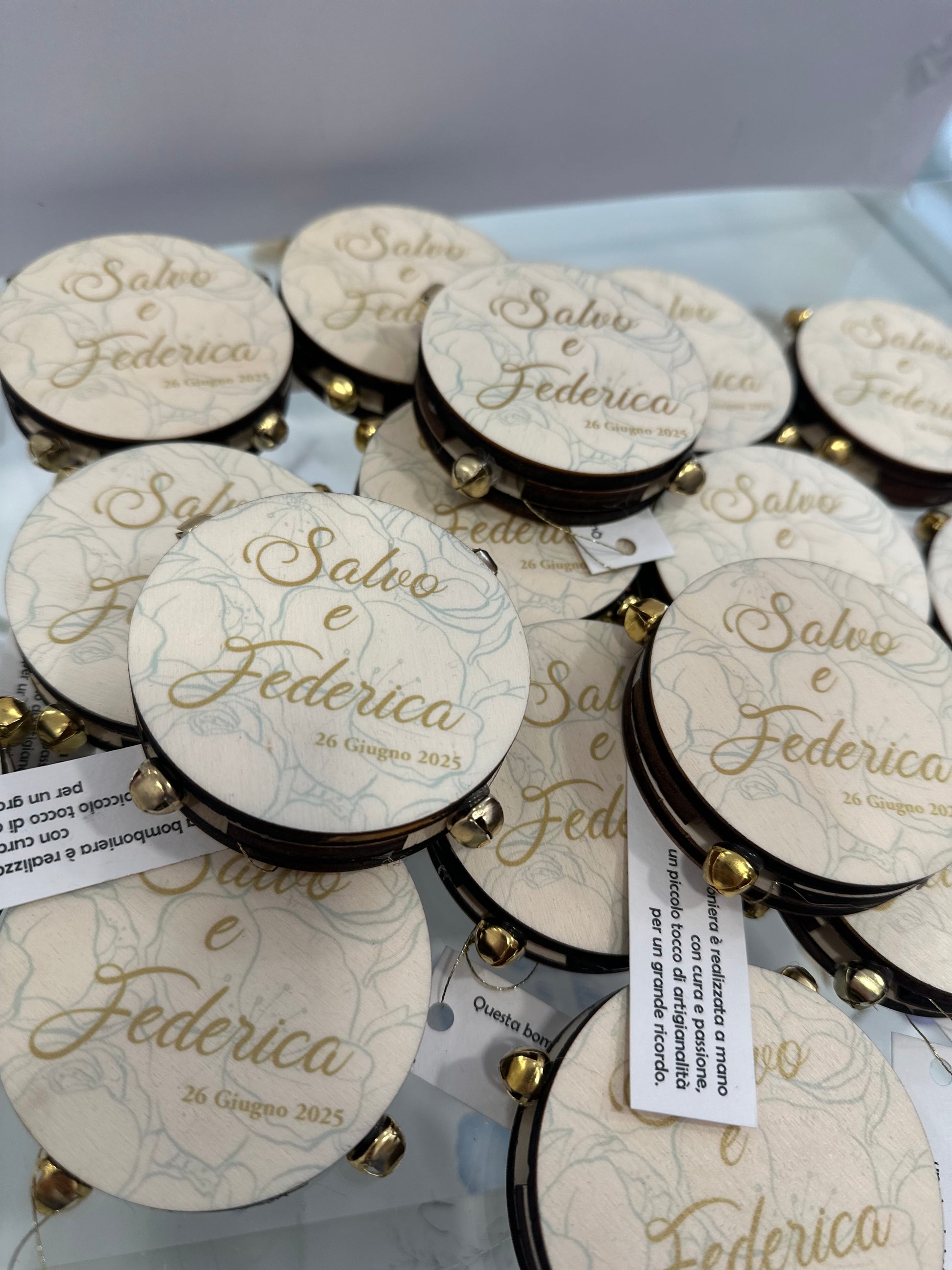 Tamburelli personalizzati in legno con stampa UV. Ideali come segnatavolo o segnaposto per qualsiasi evento. Disponibili in varie dimensioni e personalizzabili in base alle vostre esigenze, contattaci per un preventivo al numero whatsapp 0966472801
