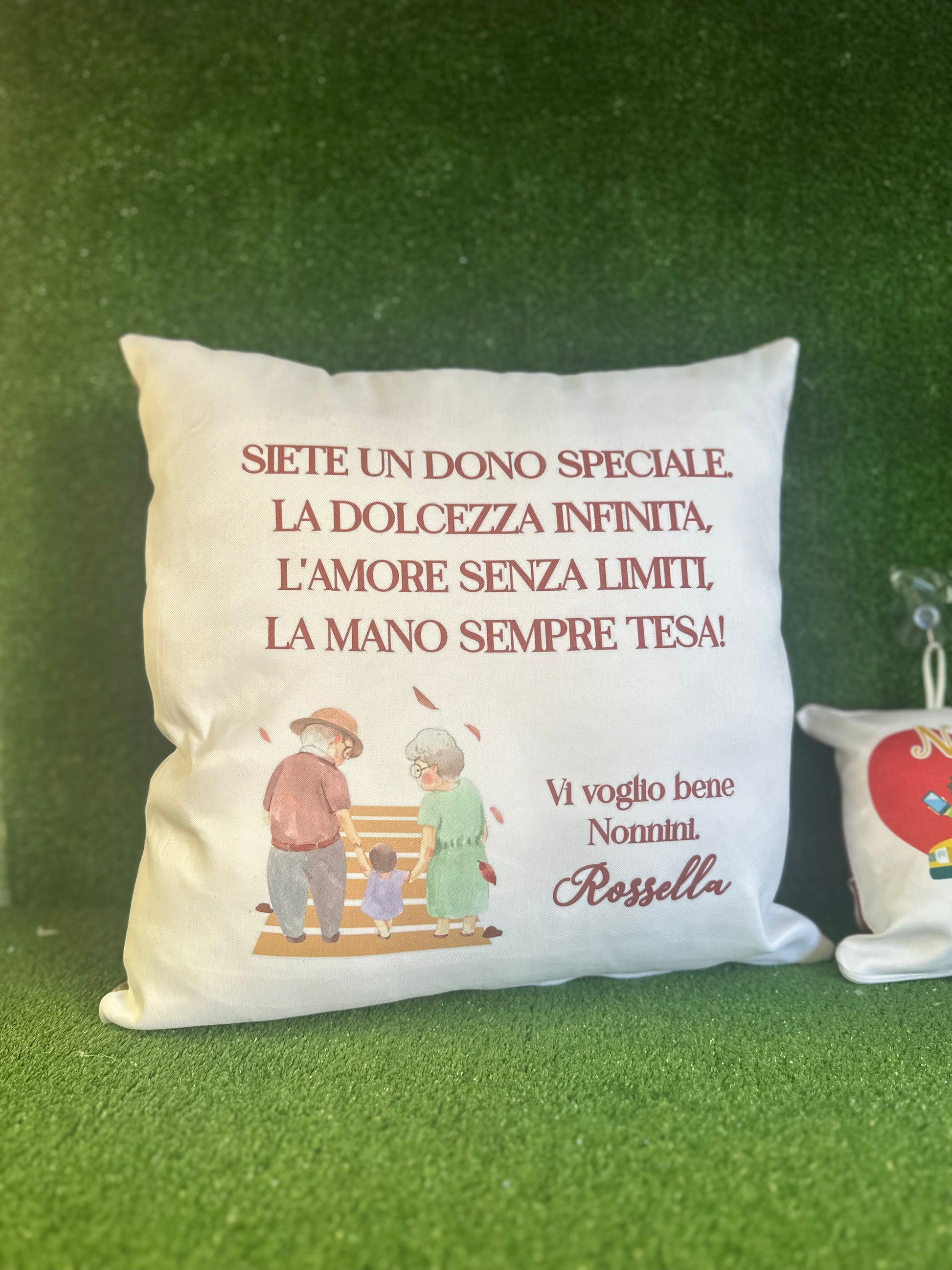 Cuscino quadrato 40x40cm con una morbida imbottitura.